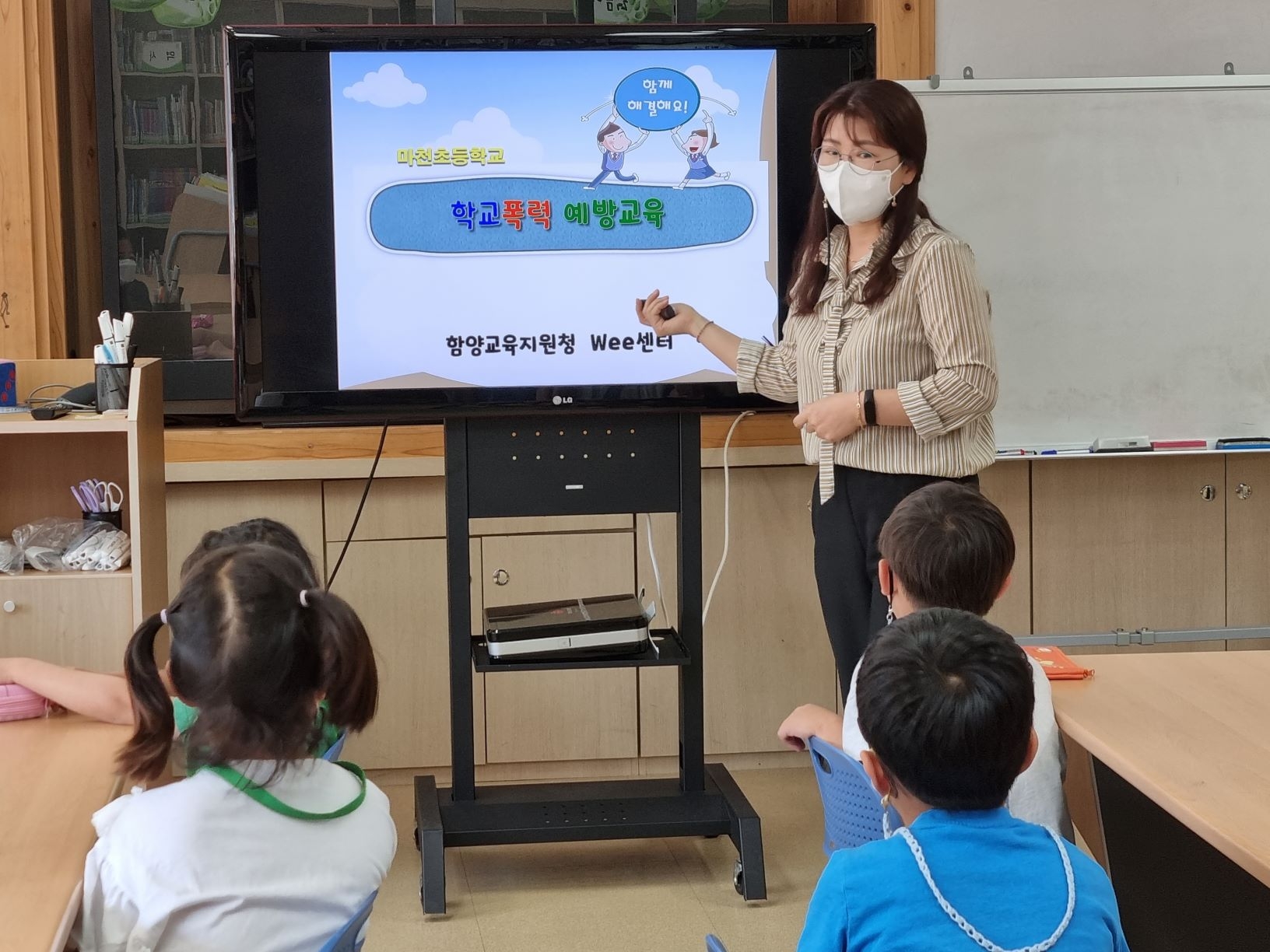 나와 친구를 지키기 위해 학교폭력 멈춰! - 마천초, 함양 Wee센터 연계 학교폭력예방교육 실시 - 마천초등학교(교장 서춘래)는 6월 22(화) 전교생을 대상으로 함양 Wee센터가 주관하는 교육프로그램을 운영하였다. 이번 교육은 방역 관리 지침을 준수하여 참석한 학생과 강사를 대상으로 발열 상태 점검과 손 소독을 하였고, 밀집도 조정을 통한 거리두기와 마스크 착용 후 진행하였다. 이번 교육프로그램은 학교폭력과 학생자살을 예방하고 위기 학생을 조기에 발견할 수 있는 대처 능력을 기르기 위해 학교폭력예방교육과 생명존중교육으로 나눠 함양Wee센터 전문상담사에 의해 진행되었다. 학생들은 학교폭력 사례, 학교폭력 예방 및 해결 방법, 도움이 필요할 때 대처하는 방법 등을 알게 되었으며, 하나밖에 없는 소중한 나, 생명의 소중함 등 생명 존중과 자살 예방 방법에 대해서도 알게 되었다. 이번 교육프로그램에 참여한 6학년 박○○ 학생은 “평소 담임선생님과 함께 공부하며 알고 있었던 것이지만, 이번 기회에 한 번 더 생명의 소중함과 학교폭력의 위험성을 알게 되었다”라며 “나를 지키고 친구를 지키기 위해 학교폭력은 하지 않아야겠다고 다짐하게 되었다”라고 소감을 밝혔다.