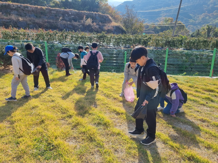 건강한 몸과 마음으로 이웃사랑을 실천해요! -마천초, 플로깅 활동으로 마을 사랑 수련활동 및 봉사활동 실시- 지난 10월 28일(금) 마천초등학교(교장 서춘래)에서는 전교생을 대상으로 학교와 마을 주변을 걸으며 쓰레기를 줍는 플로깅 활동을 실시하며 몸의 건강은 물론 마음의 건강까지 챙길 수 있는 행사가 열렸다. 이는 기존 교육과정에 계획되어 있었던 수련활동과 봉사활동을 연계한 행사로 학교에서 출발하여 학교 주변 마을인 새동네문화마을, 강청마을, 도촌마을 등을 걸으며 쓰레기를 줍는 플로깅 활동을 실시하게 된 것이다. 행사에 앞서 학생들은 지난 학생자치회 ‘천왕봉 다모임’ 시간에 코로나19로 인하여 복지시설 방문 봉사활동이 어렵게 되자 어떤 방법으로 봉사활동을 운영하면 좋을지 의논하였다. 이러한 다모임을 통해 나온 의견인 수련활동을 할 때 우리 학교 주변 마을의 쓰레기를 줍자는 의결 결과를 반영하여 이번 행사를 실시하게 되었으며, 학생들 스스로 결정하고 계획한 행사인 만큼 모두가 밝은 얼굴로 플로깅 활동에 참여하였다. 학교를 출발하여 걷는 중간중간에 계절이 바뀌어 변한 아름다운 자연의 모습도 관찰하고, 지나가는 동네 어른들께 반갑게 인사도 하며 걷다 보니 어느새 손에 든 쓰레기봉지는 가득 차고 학생들의 이마에는 땀방울이 맺혔다. 활동에 함께 참여한 서춘래 교장은 “우리 학생들이 이러한 활동을 통해 내가 나고 자란 마을, 더 나아가 자연을 아끼고 사랑하는 마음을 갖고, 앞으로도 학생들이 함께 문제를 해결해 나가는 과정을 통해 자율정신 및 공동체의식을 기르기를 바란다.”고 말했다. 이번 행사에 참여한 2학년 허○○ 학생은 “평소에 우리 동네에 쓰레기가 이렇게 많은 줄 몰랐어요. 형, 누나, 친구들이랑 쓰레기를 같이 주우니 우리 동네가 깨끗해져서 기분이 좋아요. 오늘은 점심 밥맛도 꿀맛이었어요.”라고 말했다.