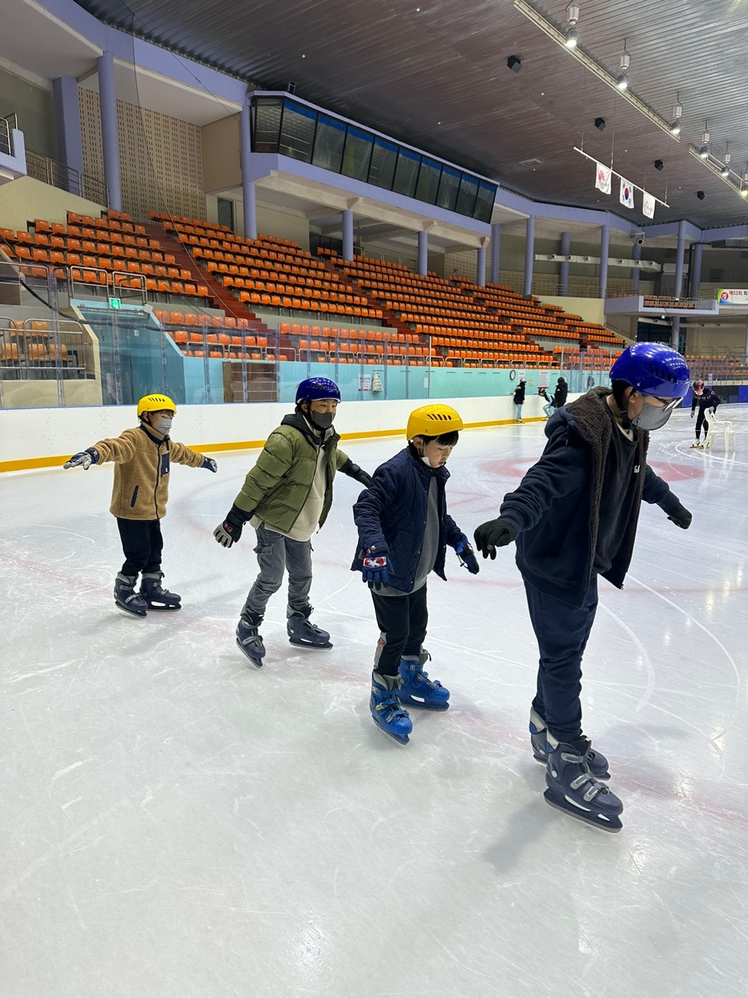 스케이트 체험으로 놀이와 배움을 함께해요! -마천초, 겨울 스포츠(스케이트) 체험학습 실시- 11월 22일(화) 마천초등학교(교장 서춘래)에서는 전교생을 대상으로 대표적인 겨울 스포츠인 스케이트 체험학습을 실시하였다. 이번 체험학습은 학생들이 건전한 여가생활을 즐길 수 있는 능력과 균형 잡힌 체력을 기르고, 친구들과 함께 어울려 소통하는 장을 마련하기 위하여 실시하게 되었다. 아침 일찍 학교를 출발하여 전주 화산체육관 빙상경기장에 도착한 학생들은 먼저 코로나19 예방교육과 안전교육을 받은 후 전문 강사의 지도를 통해 스케이트를 신고 바르게 서기, 제자리에서 스케이트 밀기, 빙상에서 걷기, 바른 자세로 스케이트 타기 등 스케이트의 기초 기능을 체계적으로 익힌 다음 질서를 지켜 안전하게 친구들과 스케이팅을 즐겼다. 처음 스케이트를 타보는 학생들이 대부분이라 강습 초기에는 얼음 위에 서 있는 것도 힘들어하였지만 강습을 통해 배운 자세를 꾸준히 연습한 뒤에는 제법 속도를 내며 스케이트를 즐기는 학생들이 점점 늘어났다. 조금 이른 겨울 날씨에도 불구하고 배움의 열기로 스케이트를 타는 학생들의 이마에는 땀방울이 송골송골 맺혔으며, 체험학습을 하는 동안 도전 의식과 성취감 또한 느낄 수 있어 놀이와 배움이 하나가 되는 소중한 시간이 되었다. 이번 체험학습에 참여한 6학년 노○○ 학생은 “그동안 스케이트를 타본 적이 한 번도 없었는데 배울 때는 조금 어렵기도 했지만 친구, 동생들과 함께 스케이트를 함께 탈 수 있어서 너무 재미있었어요. 앞으로도 스케이트처럼 다양한 겨울 스포츠를 즐기고 싶어요.”라고 말했다.