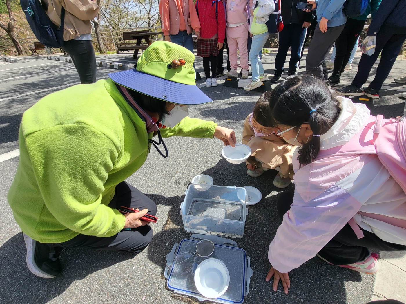 지리산에서 쑥쑥 자라는 생태 감수성을 키워요. - 마천초, 지리산 자연휴양림 연계 생태체험학습 실시 - 마천초등학교(교장 윤정미)는 4월 12일(수) 전교생과 유치원 원아들이 함께하는 지리산 자연휴양림 연계 생태체험학습을 실시하였다. 이날은 미세먼지 경보가 경남 전 지역에 발령되어 대응 요령에 따라 지리산 자연휴양림의 야외에서 계획되었던 프로그램을 실내 활동으로 대체하여 운영하였다. 지리산 천왕봉에서 가장 가까운 곳에 있는 마천초등학교는 특색교육 활동으로 주제별 현장체험학습 프로그램인 ‘마주보고 현장체험학습’을 다양하게 운영하고 있는데, 이번에 진행된 지리산 자연휴양림 체험학습은 기후환경교육의 일환으로 생명의 소중함을 느끼고 환경보호를 실천하는 프로그램으로 운영되었다. 지리산 자연휴양림을 찾은 마천초등학교 학생들은 개구리, 도롱뇽의 알과 올챙이를 직접 눈으로 관찰하며 자연에서 발견되는 소소한 것들에 관심을 기울이는 소중한 시간을 보냈다. 다음으로 진행된 ‘자연물을 이용한 액자 만들기’ 체험활동을 통해 생태 감수성과 예술적 감각을 키웠다. 5학년 심○○ 학생은 “도롱뇽알을 직접 만져보고 관찰해보니 참 신기하고, 작은 생명도 소중하게 여겨야겠다고 다짐했어요.”라며 즐겁게 소감을 전했다. 마천초등학교는 교실 밖 현장에서 배우는 생태체험활동을 통해 학생들이 자연과 친해지고 환경보호의 필요성을 생각하는 계기를 마련하고, 우리의 자연환경을 지켜나갈 책임감을 키우는 행복한 마천교육으로 교육공동체의 만족도를 높이고 있다.