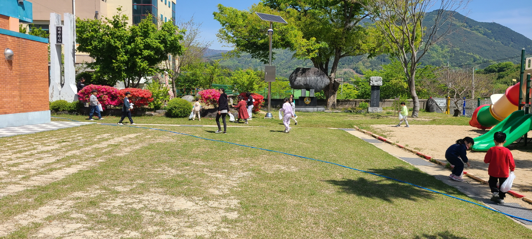 마천 꿈둥이들, 2023. 지구를 위한 쓰레기 줍깅 - 마천초, 마천병설유치원 지구의 날 기념 행사 실시 - 마천초등학교(교장 윤정미)는 유치원과 전교생을 대상으로 4월 27일(목) ‘2023. 지구를 위한 쓰레기 줍깅’ 행사를 진행하였다. 이번 행사는 4월 22일 지구의 날을 기념하여 ‘쓰레기 없는 세상’을 만들기 위해 마천초등학교 교내에서 함께 걸으며 같이 쓰레기 줍깅 활동을 함으로써 몸으로 익히는 환경 교육을 실천하였다. 먼저, 환경 기념일인 4월 22일 ‘지구의 날’과 ‘줍깅’의 의미를 알아보고, 학교 주변을 걸으며 쓰레기 줍기 활동을 시행했다. 이후 주워 온 쓰레기는 분리수거 한 후 ‘제로웨이스트’ 상품을 받는 행사가 진행되었다. 활동을 마친 유치원 김○○ 유아는 “선생님, 이제 지구가 안 아프겠죠?”라며 “걸으면서 쓰레기를 주우니 내 몸이 튼튼해지고 지구도 건강해질 것 같아요.”라고 소감을 전했다. 윤정미 교장은 “아이들이 함께 걸으며 같이 줍는 환경보호 실천 운동에 참여하는 경험을 통해 환경에 대해 깊은 관심을 가지고 자연과 더불어 살아가는 바람직한 가치관 형성에 큰 도움이 되리라 기대한다.”라고 말했다.