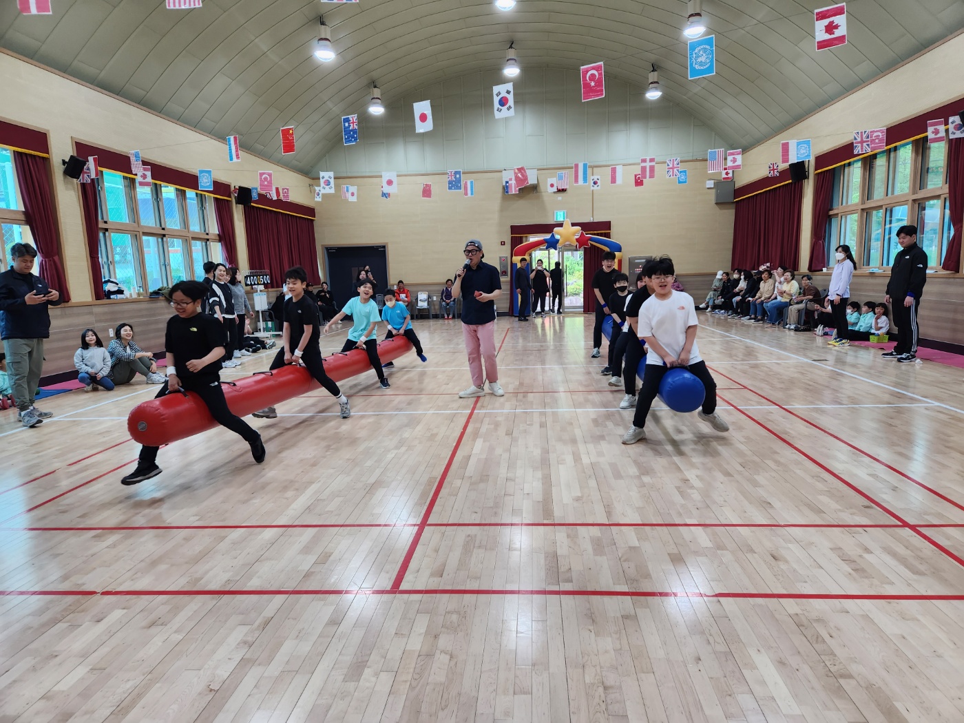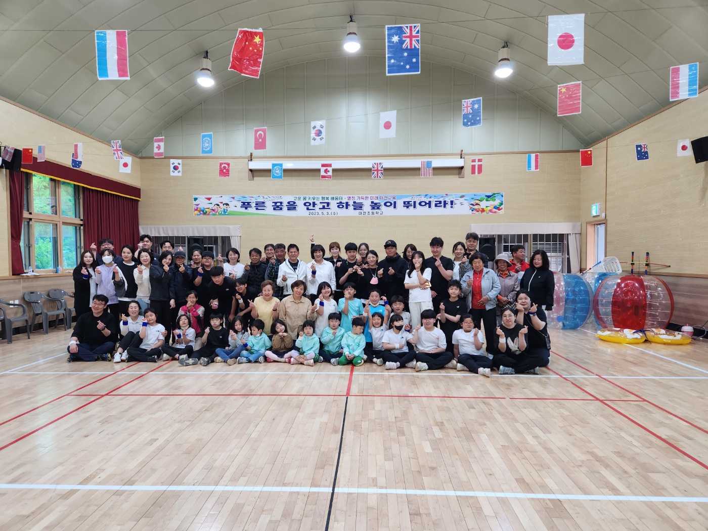 마천초등학교(교장 윤정미)는 가정의 달을 맞이하여 유치원, 전교생, 학부모 및 지역민을 대상으로 5월 3일(수)에 마천 가족 어울림 한마당(운동회)을 개최하였다. 이번 마천 가족 어울림 한마당은 다양한 체육활동을 통하여 체육에 대한 흥미를 높이고 심신을 단련시키는 것뿐 아니라 코로나 이후 처음으로 가족들과 지역민을 모시고 지역 사회의 문화를 발전시키는 어울림의 장을 마련하기 위해 실시되었다. 이날 1부 행사에서는 모범 어린이 표창 수여 및 재학생 장학금을 전달하였고, 2부 행사에서는 대형 컵 쌓기, 협동 공 튕기기, 나는 점핑백, 협동 드리블 등의 체육행사가 진행되어 마천초 교육공동체가 한마음이 되어 함께 참여하는 뜻깊은 시간이 되었다. 운동회에 참가한 7세 전○○ 원아는 “가족, 친구들과 함께 어울려 놀이하니 신났다.”라고 말했다. 또한 본교 회장인 김○○ 학생은 “부모님과 함께 놀이를 할 수 있어서 좋았고 6학년의 마지막 추억을 만들게 되어서 기쁘다.”라고 만족도를 표현했다. 윤정미 교장은 “코로나19로 지난 3년간 다 함께 어울리는 자리를 가지지 못해서 아쉬웠는데, 오늘 즐겁고 뜻깊은 시간을 보내게 되어 정말 기쁘다.”라며 “마천 가족 어울림 한마당에 참여해주신 모든 분에게 행복한 추억이 되길 바란다.”라고 말했다.