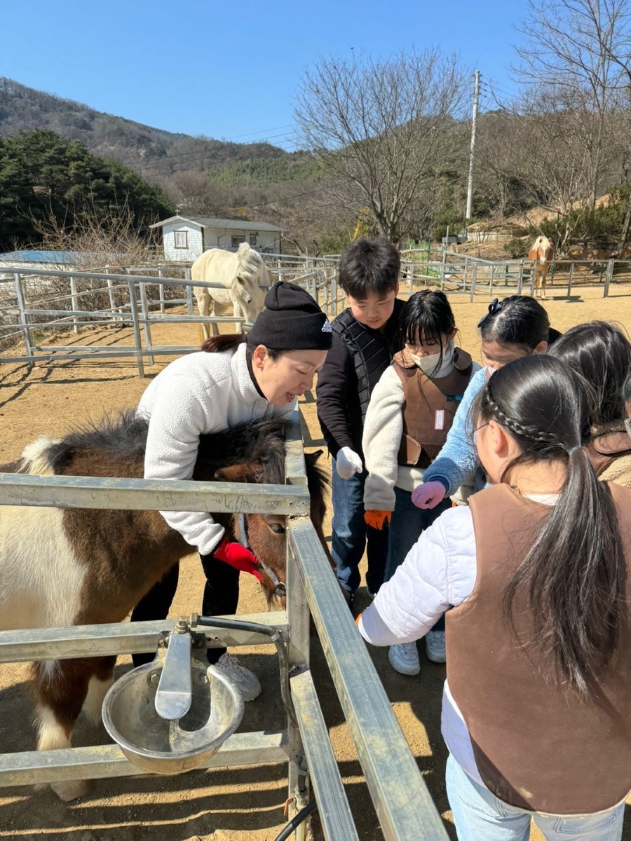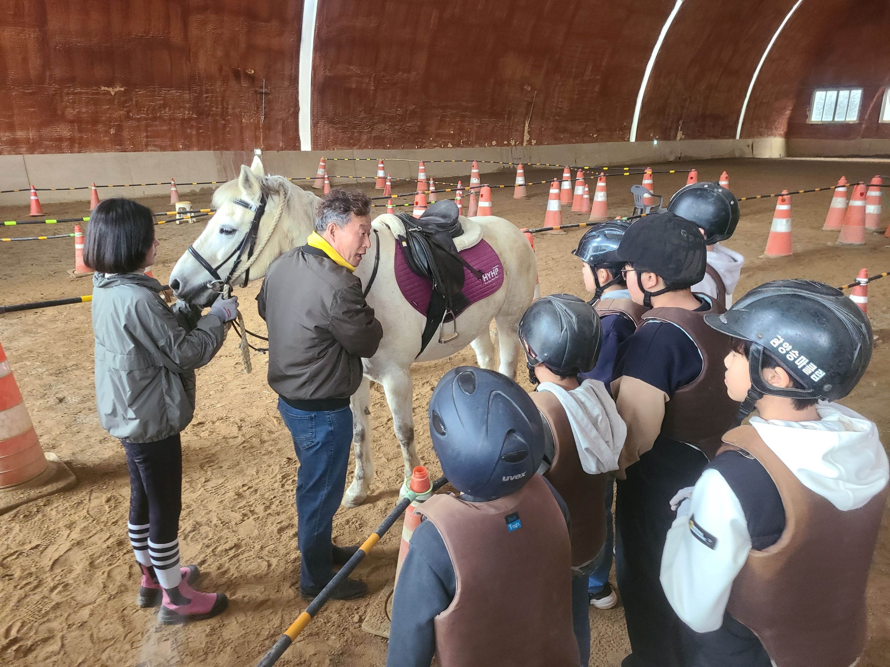 승마 체험학습으로 호연지기의 마음을 길러요 - 마천초, 승마 체험 특기적성 프로그램 운영 - 마천초등학교(교장 윤정미)는 3월 21일(목)과 3월 28일(목) 3~6학년 학생을 대상으로 호연지기의 마음을 기르는 승마 체험학습을 운영했다. 이번 승마 체험학습은 마천초만의 특색교육 활동으로 “함양승마클럽”에서 매주 목요일 연 24회(학생 1인 12회) 실시할 예정이다. 승마 체험학습은 마천초가 “작은 학교 활성화 지원사업(군청지원)”에 공모하여 지원받은 예산으로 운영하는데, 승마의 기술적인 측면을 배우는 동시에 자연과의 조화를 경험하고 집중력과 생태 감수성을 기르는 의미 있는 시간이 될 것으로 기대된다. 승마 체험학습 첫 시간에는 말에게 먹이 주기, 말의 습성 이해하기, 승마 장비 착용법 및 안전교육으로 진행되었다. 말이 좋아하는 당근을 손바닥에 올려놓고 간식도 먹여주고 말의 예민한 감각 특성을 알아가면서 말과 친해지는 시간을 가졌다. 또한, 사고 없이 안전한 체험을 위해 올바른 승마와 하마 방법을 익히는 등 안전교육을 시작으로 학생들은 앞으로 1년 동안 바른 자세를 유지하면서 밸런스를 지키고 평보와 경속보 등을 익히게 된다고 한다. 체험을 마친 5학년 김○○ 학생은 “오늘 처음 말을 보고 승마 체험도 해 보았다. 생각보다 말이 커서 놀랐다. 말안장에 올라가고 내려올 때 조금 무서웠지만 막상 말을 타보니 재미있었다.”라고 높은 만족도를 나타냈다. 마천초등학교 담당 교사는 “마천초등학교는 다양한 특색교육 프로그램을 통해 학생들의 창의성을 증진하고 바른 인성 함양에 힘쓰고 있다. 앞으로 학생들은 새로운 경험과 도전을 통해 자기 잠재력을 최대한 발휘할 수 있도록 돕겠다.”라고 말했다.