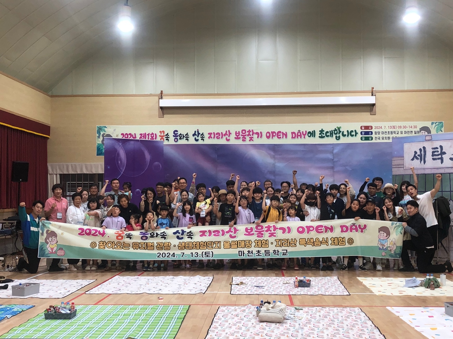 함양 마천초등학교에는 행복한 꿈동산이 있다. -마천초, 2024. 꿈동산 마천오픈데이 개최- 마천초등학교(교장 윤정미)는 7월 13일(토)에 20가족 70명의 마천초 교육 가족 및 타지역 희망 가족을 모시고 ‘2024. 꿈동산 마천 오픈데이 행사’를 실시하였다. 이번 오픈데이 행사는 작년에 이어 세 번째로 진행되었으며, 행사에 참여한 가족들은 아름다운 마천 지역에서 특색있는 마천초등학교만의 교육활동을 만끽하며 즐겁고 유익한 시간을 보냈다. 오전에는 뮤지컬 ‘판타스틱 런드리’를 함께 감상하며 참석한 가족들 사이의 친목을 도모하고 문화예술감성을 키우는 뜻 깊은 시간을 보냈다. 뮤지컬의 내용은 ‘꿈도 희망도 없이 하루하루 재미없는 일상과 마음 하나 터놓을 친구 없이 지루한 학교생활을 하던 주인공이 세탁소의 세탁물을 입게 되면서 다른 삶을 체험하게 되고 자기 삶을 되돌아보게 된다는 내용’으로 학생들에게 일상과 가족의 소중함을 느끼게 하는 재미있는 내용이었다. 오후에는 지리산에서만 맛볼 수 있는 건강한 산채정식을 먹고 시원하고 신나는 물썰매를 체험하였다. 마천초등학교 인근에 위치한 지리산생태체험단지 물썰매장에서 참가한 가족들 모두 푸른 자연을 느끼고 무더운 더위를 날려 보낼 수 있는 즐거운 시간을 보냈다. 오늘 행사에 참여한 한 학부모는 “가족들과 함께 시간을 보낼 수 있어 너무 즐거웠습니다. 마천초 교육과정을 살펴보고 학교를 둘러보면서 작은 학교에 우리 아이를 보내면 좋겠다는 생각이 들었다.”라고 소감을 전했다. 행사를 준비한 윤정미 교장은 “이번 행사에 참석해 주신 교육 가족들에게 감사한 마음을 전한다. 마천초 학생 가정은 지역과 학교를 사랑하는 마음을 다지고 다른 지역에서 오신 가족에게는 아름다운 마천골의 자연환경과 작은 학교의 장점을 경험하는 좋은 기회가 된 것 같다.”라고 말했다.